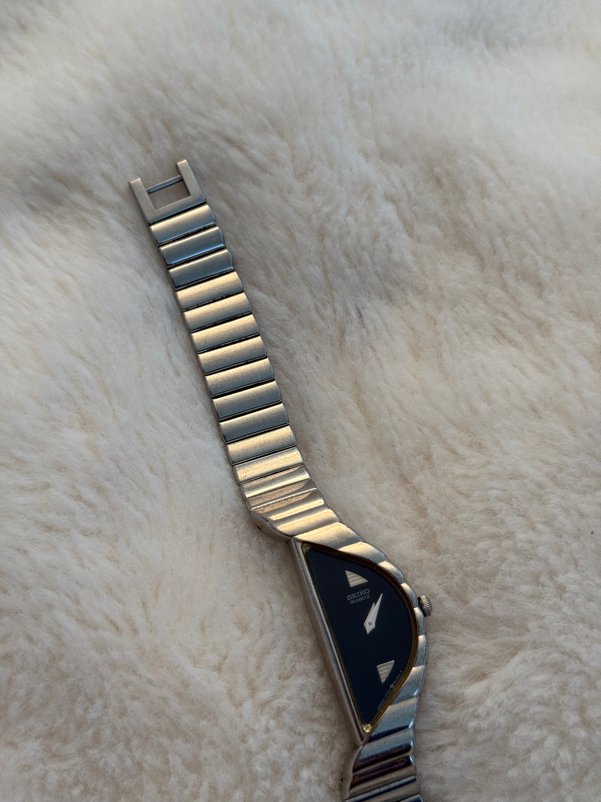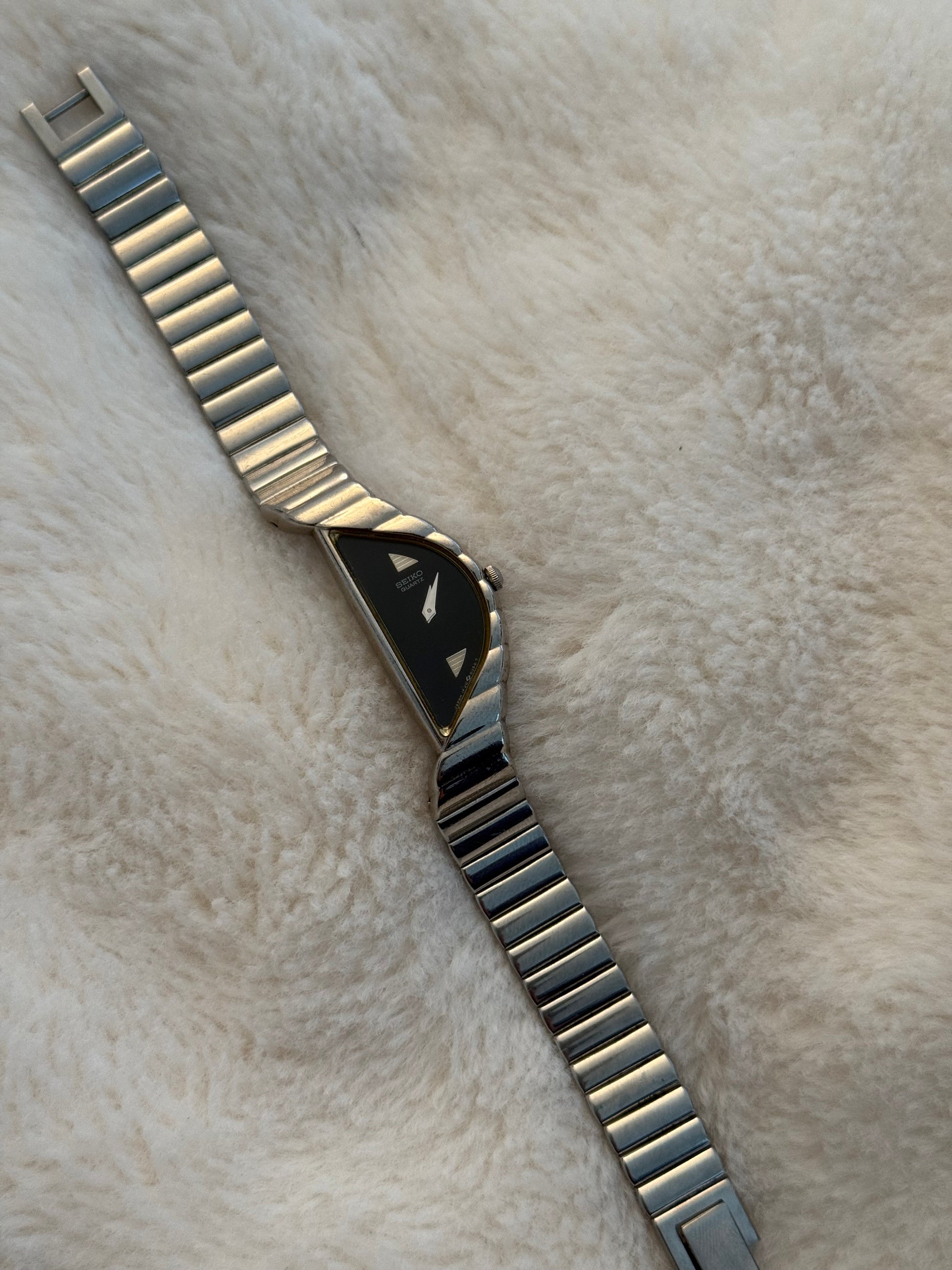 - notes: SUPER rare and collectible 1990's seiko half moon watch. A beautiful piece with a half moon face and very comfortable bracelet! This specific example is the steel and black dial variant—making it even more rare. These are super timeless pieces and not many were made. it will likely only increase in price down the road!